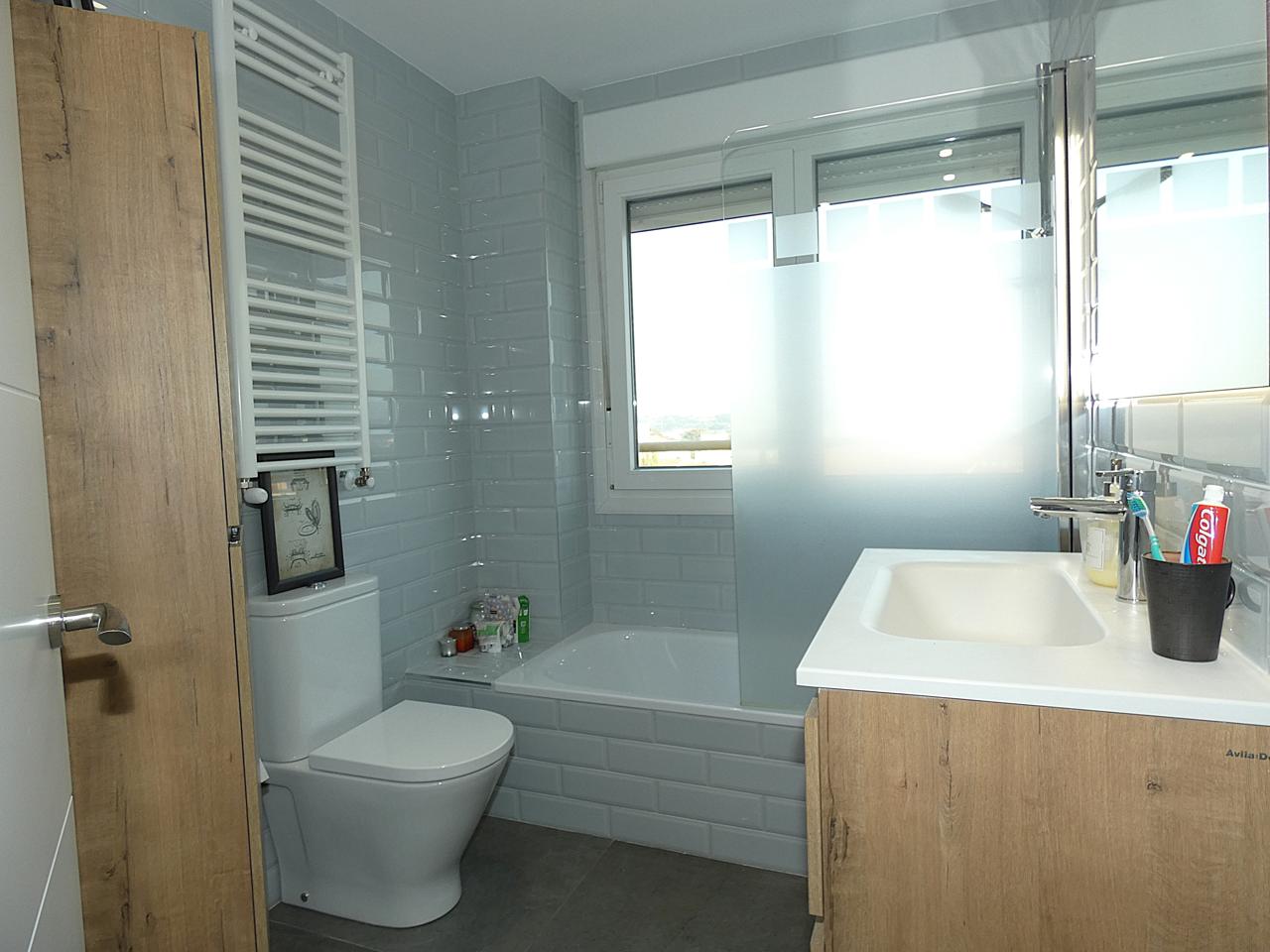 99 m2 distribuidos en la primera planta en 2 habitaciones, una de ellas con salida a balcón, cocina y amplio salón con salida a balcón, lavandería, baño con bañera y ventana, camarote de 5 m2 y la 2da planta con 99 m2 de terraza.
